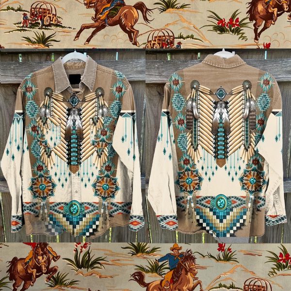American Indian Western Shirt Vintage Stripe Print Casual Shirt